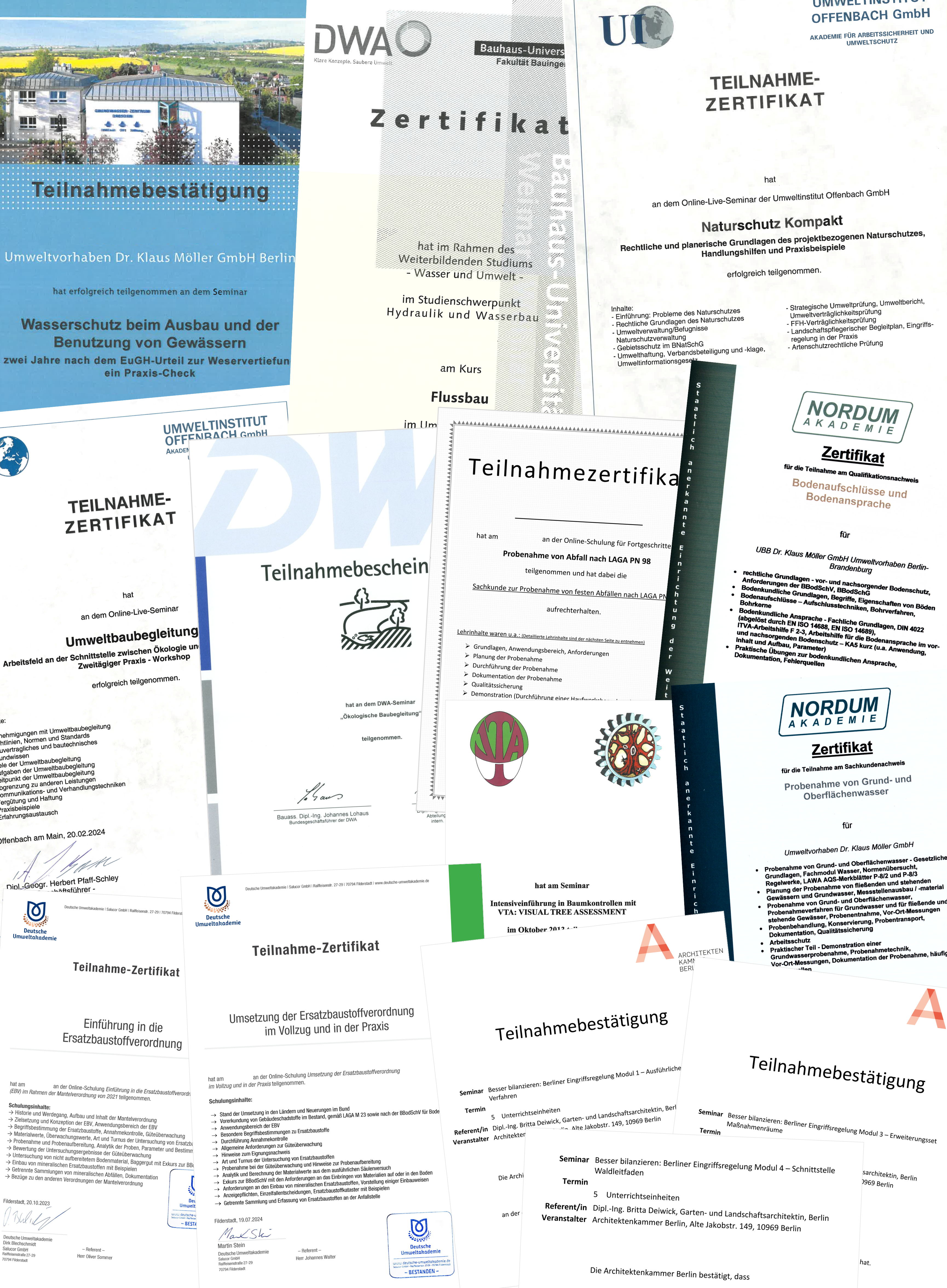 Die Mitarbeiter von UBB nehmen regelmässig an Weiterbildungs- und Zertifizierungsmaßnahmen teil. Dadurch wird ein aktueller Stand von Wissenschaft und Technik gewährleistet. Ausgewählte Zertifizierungen sind u.a.: